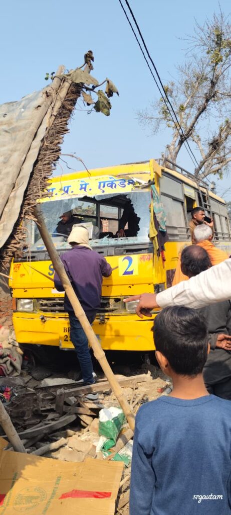 अनियंत्रित स्कूल बस झोपड़ीनुमा घर में घुस दो मासूमों की मौतगर्भवती महिला गंभीर रूप से घायल,चालक हिरासत में