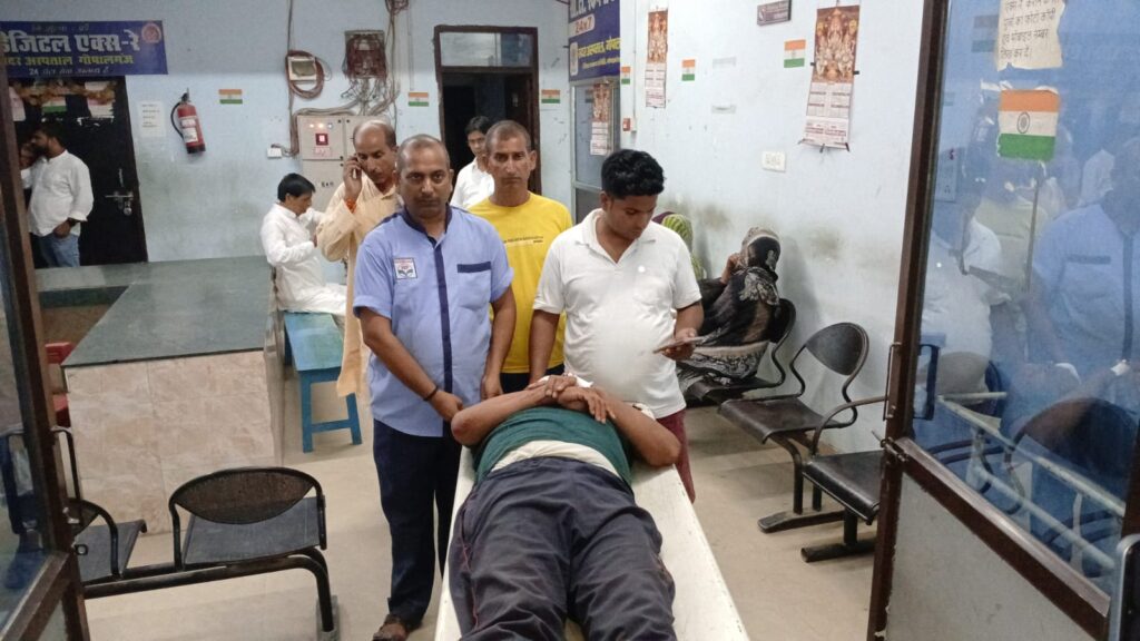 ​बैकुंठपुर थाना क्षेत्र के चमनपुरा गांव गए डायल 112 के विशम्भपुर थाने के चालक चरण पांडेय के( 55)वर्षीय पुत्र उमेश पांडेय को जमीन बेचने से मना करने पर पट्टीदारों ने गोली मार दी। जिसमें वे गंभीर रूप से घायल हो गए। आनन फानन में उन्हें परिजन सदर अस्पताल लाएं । जहां इलाज के बाद डॉक्टरों ने उन्हें चिंताजनक हालत में बेहतर इलाज के लिए गोरखपुर रेफर कर दिया। जहां उनकी हालत गंभीर बनी हुई है। उनके मुंह में गोली लगी है। पुलिस दोनों मामलों में बदमाशों की धर पकड़ के लिए छापेमारी कर रही है।