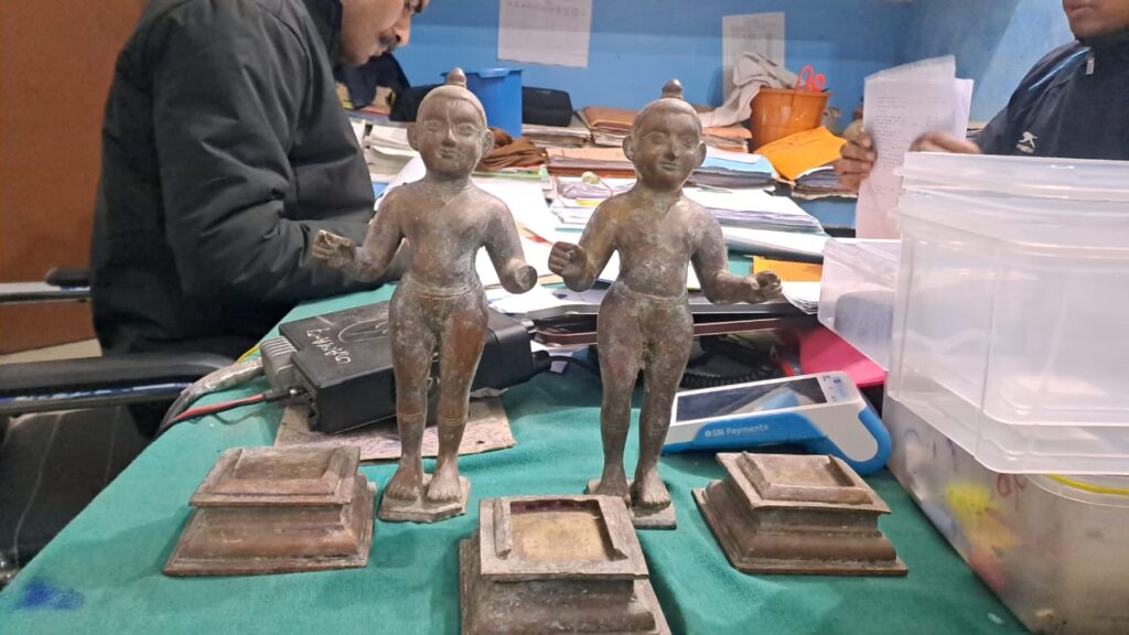 अरार मोड़ पर पुलिस की बड़ी कार्रवाई:कुख्यात चोर शरीफ साईं के घर छापेमारी,अष्टधातु की दो मूर्तियां देसी कट्टा बरामद,मां व पत्नी गिरफ्तार