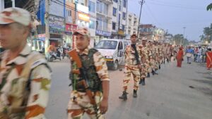 चुनाव के मद्देनजर सीआरपीएफ बटालियन के साथ शहर में फ्लैग मार्च,विधानसभा चुनाव को लेकर सुरक्षा व्यवस्था का लिया जाएजा