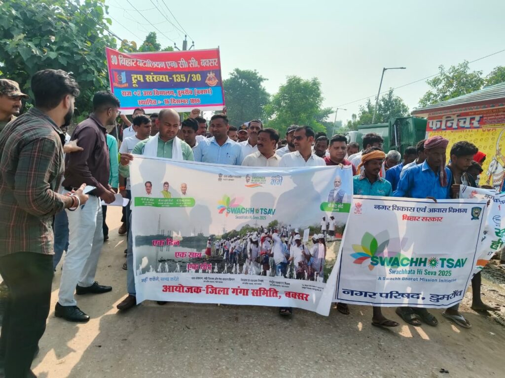 बक्सर, 22 सितंबर (विक्रांत) राष्ट्रीय स्वच्छ गंगा मिशन के तहत सोमवार को डुमरांव नगर के छठिया पोखरा परिसर में स्वच्छता अभियान का आयोजन किया गया। यह कार्यक्रम जिला गंगा समिति के बैनर तले आयोजित हुआ, जिसकी अगुवाई समिति के नोडल पदाधिकारी आलोक वत्स, जिला स्वीप कोषांग के नोडल अधिकारी अमित कुमार एवं एनसीसी के कमान अधिकारी कर्नल रितेश रंजन ने की।