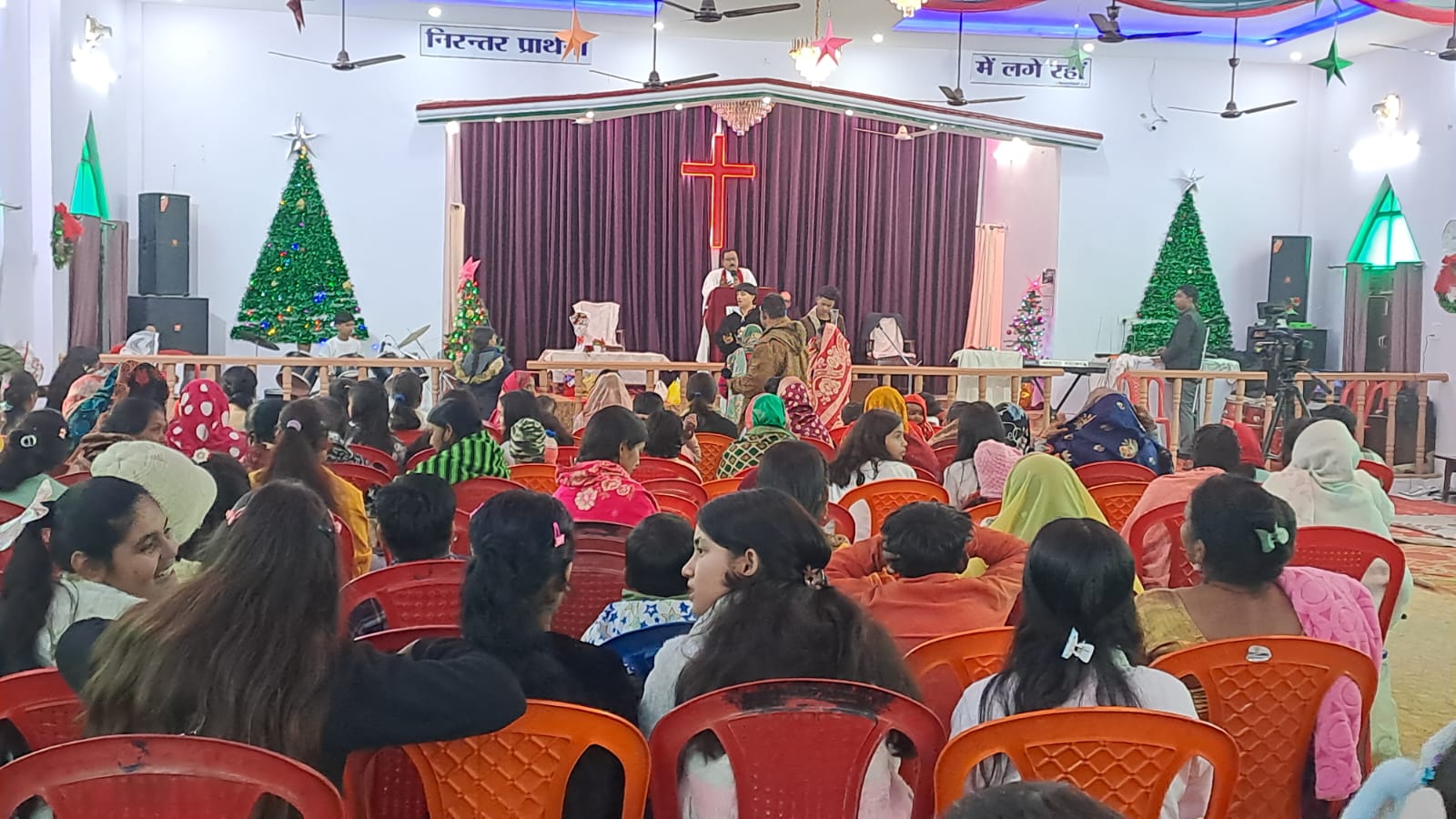 क्रिसमस के मौके पर चर्च को रंग-बिरंगी लाइटों,गुब्बारों और आकर्षक क्रिसमस ट्री से भव्य रूप से सजाया गया था,जिससे पूरा परिसर उत्सवमयी नजर आया। कार्यक्रम की शुरुआत विशेष प्रार्थना सभा से हुई, जिसमें पादरी ने प्रभु यीशु के प्रेम, शांति और भाईचारे के संदेश को साझा करते हुए समाज में मानवता और सेवा भाव को अपनाने की अपील की।