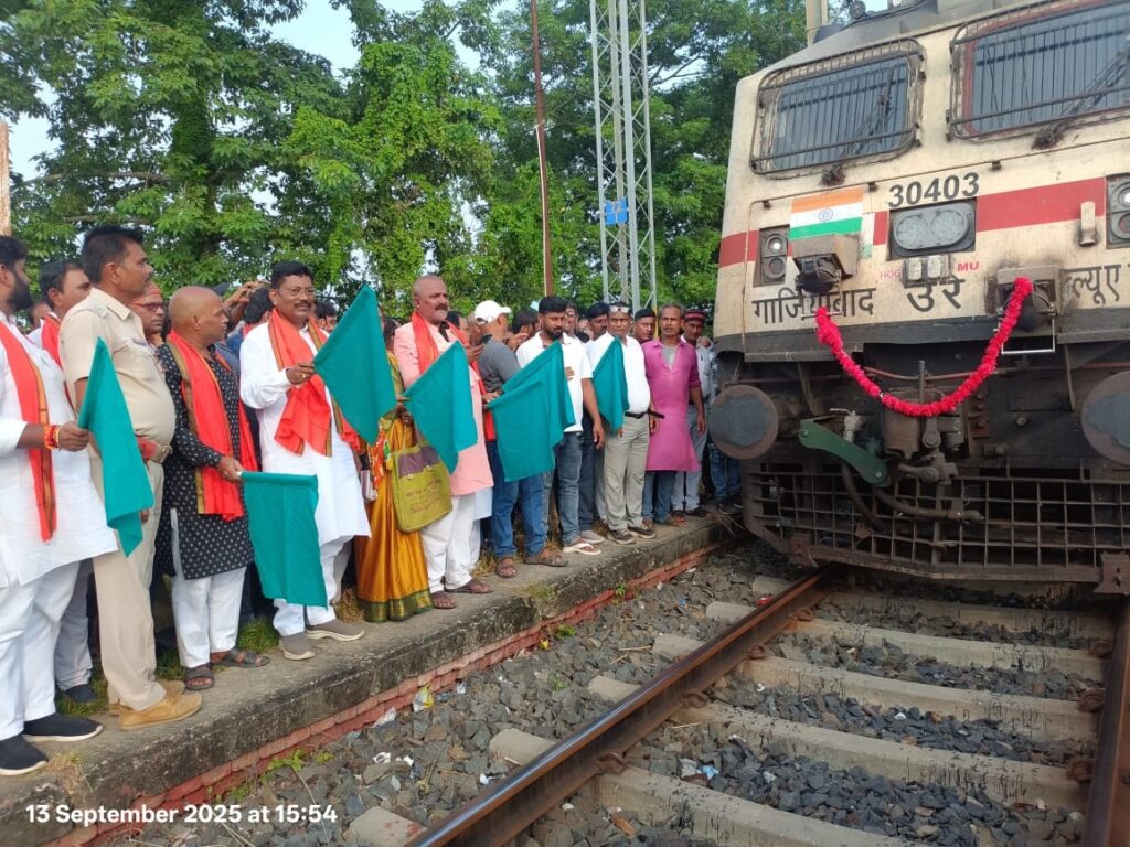 समस्तीपुर, 13 सितम्बर (मोहम्मद जमशेद) समस्तीपुर मंडल के अंतर्गत जोगियारा स्टेशन पर ट्रेन नं 15561/62 दरभंगा- गोमतीनगर अमृत भारत एक्सप्रेस के ठहराव का शुभारंभ हुआ । इस अवसर पर माननीय सांसद, लोकसभा, मधुबनी, अशोक कुमार यादव द्वारा ट्रेन को हरी झंडी दिखा कर रवाना किया गया।