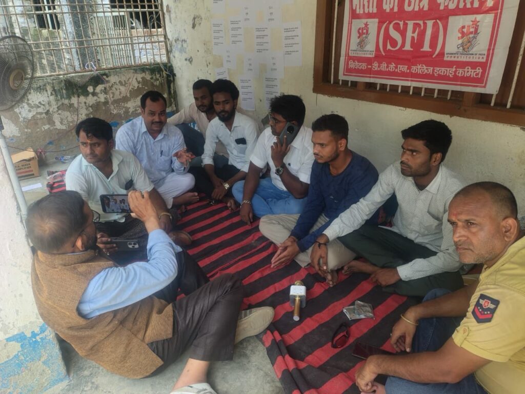 समस्तीपुर, 13 सितंबर (राजेश झा) डीबीकेएन कॉलेज नरहन में स्टूडेंट्स फेडरेशन ऑफ इंडिया एसएफआई के बैनर तले छात्र नेताओं द्वारा लगातार 40 घंटे से आमरण अनशन जारी है। छात्रों की मांगों को लेकर शुरू हुआ यह आंदोलन अब गंभीर रूप लेता जा रहा है, लेकिन विश्वविद्यालय प्रशासन अब तक इस पर कोई ठोस पहल नहीं कर पाया है।