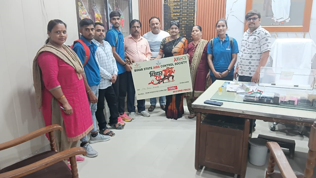 बक्सर, 3 सितम्बर (विक्रांत) बिहार रेड रन द्वारा पटना के पाटलिपुत्र स्टेडियम में आयोजित राज्य स्तरीय प्रतियोगिता में डी के कालेज के राष्ट्रीय सेवा योजना के स्वयंसेवक छात्र सोनु कुमार ने पूरे बिहार में द्वितीय स्थान हासिल कर महाविद्यालय का नाम रौशन किया। एनएसएस के छात्र सोनू कुमार को मेडल सहित 7500 रुपए की नकद राशि पुरस्कार स्वरूप प्राप्त हुई है ।