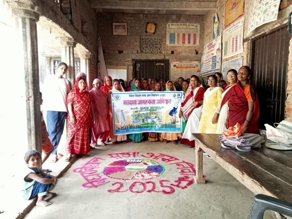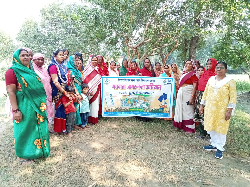 बक्सर, 24 अक्टूबर (विक्रांत) आगामी विधानसभा चुनाव को लेकर स्वीप कोषांग, बक्सर के निर्देशन में जिलेभर में मतदाता जागरूकता अभियान लगातार जारी है। इसी क्रम में डुमरांव प्रखंड के नवाँव पंचायत और नया भोजपुर केंद्र की आंगनवाड़ी सेविकाओं ने सीडीपीओ शबाना की देखरेख में अनोखे अंदाज में मतदाता जागरूकता कार्यक्रम आयोजित किया।