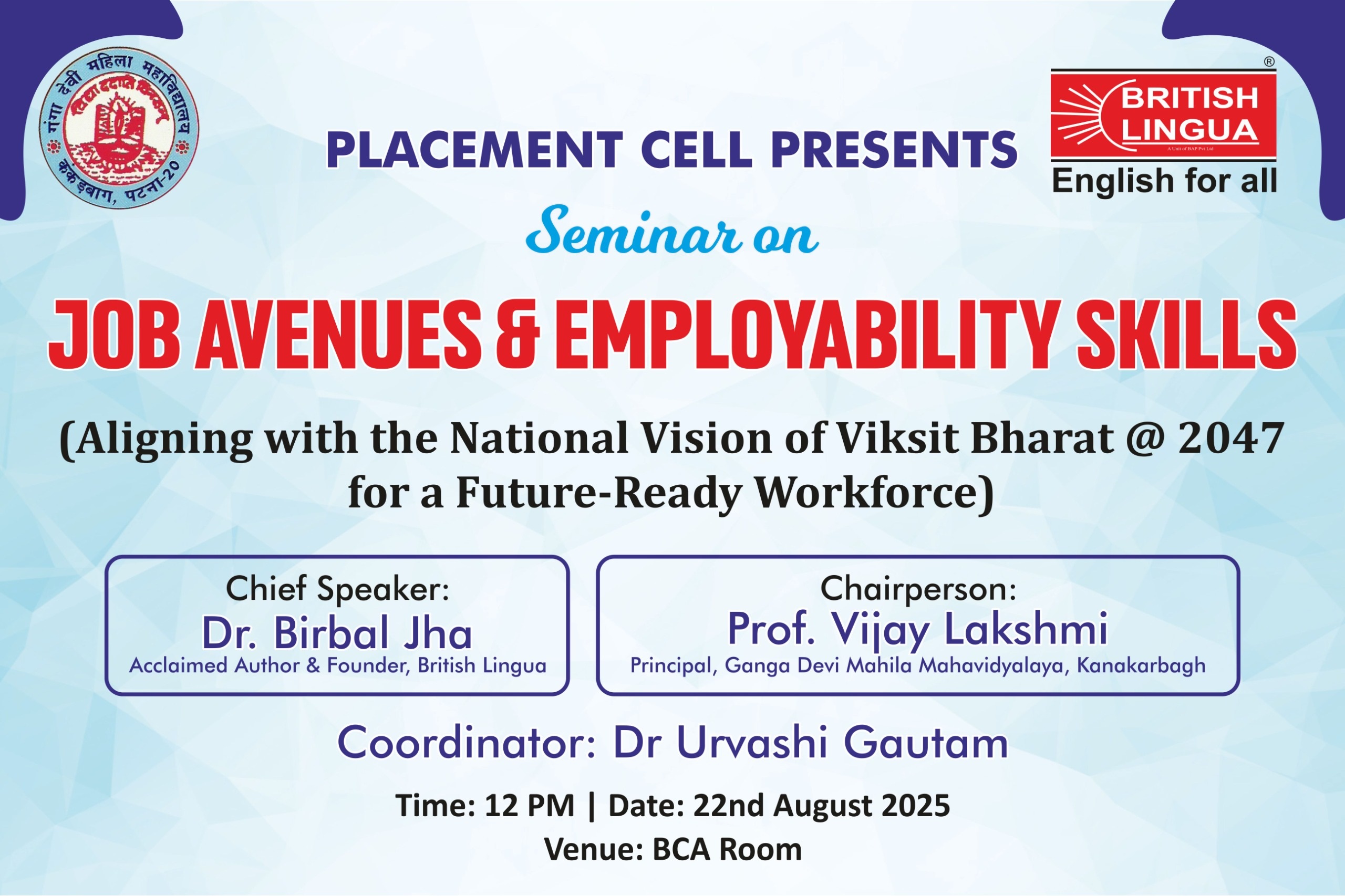 पटना (सेंट्रल डेस्क) 20 अगस्त 2025 अंग्रेज़ी भाषा शिक्षा के क्षेत्र में देशव्यापी पहचान रखने वाले डॉ. बीरबल झा 22 अगस्त को गंगा देवी महिला महाविद्यालय, कंकड़बाग में आयोजित एक सेमिनार में मुख्य वक्ता के रूप में संबोधित करेंगे। सेमिनार का विषय है “रोजगार के अवसर और एम्प्लॉयबिलिटी स्किल्स: विकसित भारत @2047 की राष्ट्रीय दृष्टि के अनुरूप।”