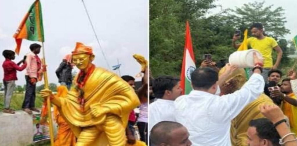 मुजफ्फरपुर, 17 सितंबर (मोहम्मद जमशेद) समस्तीपुर की सीमावर्ती क्षेत्र से सटे मुजफ्फरपुर जिले के मीनापुर में आयोजित एनडीए कार्यकर्ता सम्मेलन के दौरान शुरू हुआ गांधी प्रतिमा विवाद अब गहराता जा रहा है। हाल ही में हुए कार्यक्रम में कुछ भाजपा कार्यकर्ताओं ने राष्ट्रपिता महात्मा गांधी की प्रतिमा पर बीजेपी का झंडा और पार्टी का पट्टा पहनाया था।