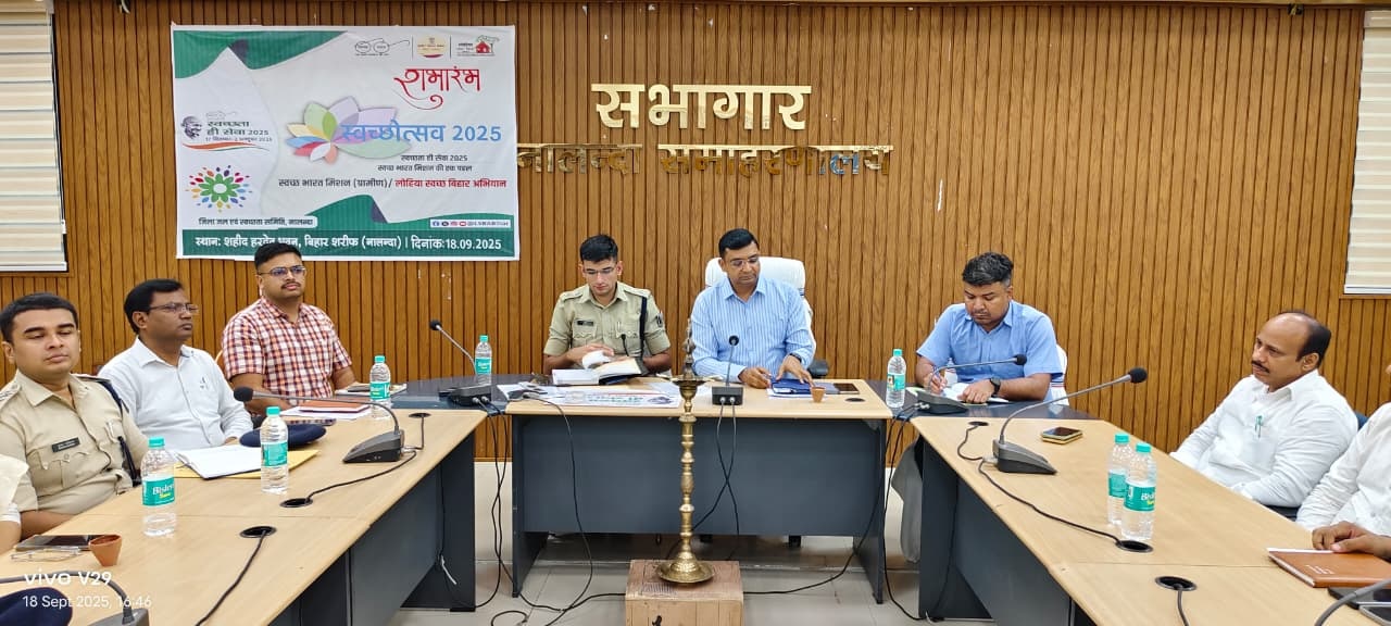 नालंदा, 18 सितंबर (अविनाश पांडेय) नालंदा जिले में आगामी दुर्गा पूजा एवं अन्य त्यौहारों को शांतिपूर्ण और हर्षोल्लासपूर्ण वातावरण में मनाने के उद्देश्य से आज 18 सितंबर 2025 को जिला शांति समिति की बैठक का आयोजन किया गया। इस बैठक की अध्यक्षता जिलाधिकारी कुंदन कुमार और पुलिस अधीक्षक भारत ने की।