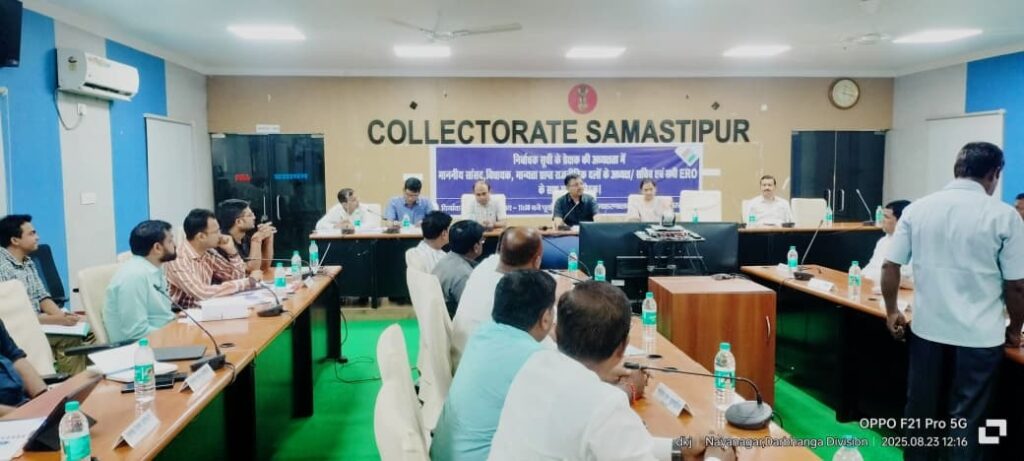 समस्तीपुर (अशोक “अश्क”) समाहरणालय स्थित सभागार में आज दरभंगा प्रमंडल के आयुक्त एवं निर्वाचक सूची प्रेक्षक की अध्यक्षता में एक महत्वपूर्ण समीक्षा बैठक का आयोजन किया गया। इस बैठक में जिले के सभी मान्यता प्राप्त राजनीतिक दलों के प्रतिनिधियों, माननीय सांसद एवं विधायकों के प्रतिनिधियों तथा निर्वाचक निबंधन पदाधिकारियों ने भाग लिया।