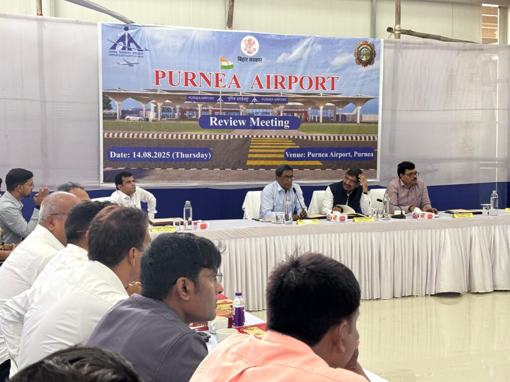 पूर्णिया:-15 अगस्त(राजेश कुमार झा)पूर्णिया एयरपोर्ट के निर्माण कार्यों की अद्यतन प्रगति की समीक्षा गुरुवार को नवनिर्मित सिविल इन्क्लेव परिसर (एयरपोर्ट पूर्णिया) में प्रत्यय अमृत विकास आयुक्त बिहार,समीर कुमार सिन्हा सेक्रेट्री मिनिस्ट्री आफ सिविल एवैलेशन,गवर्नमेंट ऑफ़ इंडिया,विपिन कुमार चेयरमैन एएआई,आयुक्त पूर्णिया प्रमंडल पूर्णिया राजेश कुमार,डीआईजी पूर्णिया, जिला पदाधिकारी पूर्णिया अंशुल कुमार,पुलिस अधीक्षक पूर्णिया स्वीटी सहरावत,विंग कमांडर इंडियन एयर फोर्स तथा संबंधित अधिकारियों के साथ किया गया.