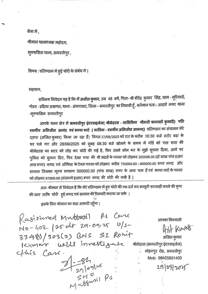 उन्होंने कहा कि इस प्रकार की लापरवाही से अपराधियों का मनोबल बढ़ता है और आम जनता का पुलिस से भरोसा उठता है। उन्होंने संबंधित पुलिस अधिकारियों को चेतावनी देते हुए कहा कि जल्द से जल्द दोषियों की गिरफ्तारी की जाए और चोरी गए रुपये व सामान की बरामदगी सुनिश्चित की जाए।
