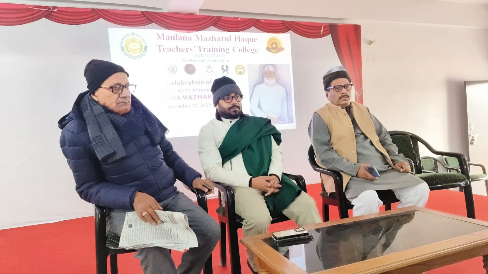 कार्यक्रम में महाविद्यालय परिवार ने उनके योगदान को नमन करते हुए भावभीनी श्रद्धांजलि अर्पित की।मुख्य अतिथि महाविद्यालय अध्यक्ष मो० अबु तमीम और सचिव मो० अबु सईद की गरिमामयी उपस्थिति ने समारोह को विशेष महत्व दिया। प्राचार्य डॉ. अंजुम वारिस ने अध्यक्षीय उद्बोधन में मौलाना मज़हरुल हक़ के जीवन और स्वतंत्रता संग्राम में योगदान पर प्रकाश डाला।