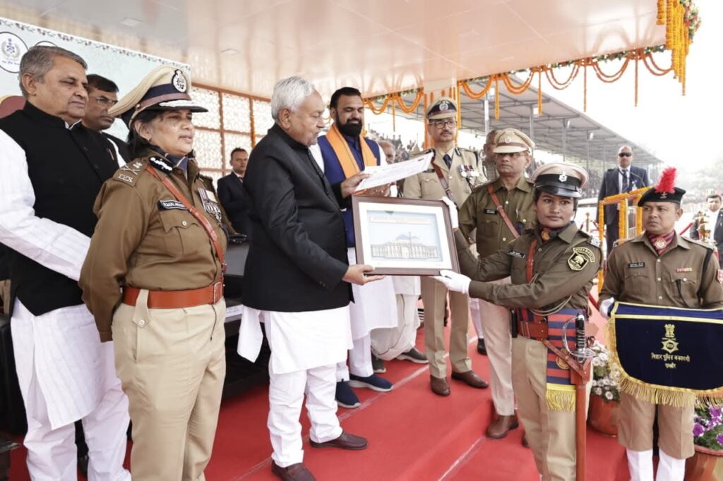 परेड मैदान देशभक्ति और अनुशासन के रंग में रंगा नजर आया।मुख्यमंत्री ने अपने संबोधन में कहा कि समाज में कानून-व्यवस्था बनाए रखने में पुलिस की भूमिका सबसे अहम है। आप सभी ने कठोर प्रशिक्षण प्राप्त किया है और मुझे विश्वास है कि आप निष्ठा, ईमानदारी, संवेदनशीलता और अनुशासन के साथ अपने कर्तव्यों का निर्वहन करेंगे। उन्होंने उत्कृष्ट प्रदर्शन करने वाले प्रशिक्षुओं को पुरस्कृत भी किया। अंकित कुमार को बेस्ट प्रोवेशनर ओवरऑल एवं इंडोर, रुपेश कुमार को बेस्ट प्रोवेशनर आउटडोर तथा सुश्री मीना कुमारी को बेस्ट प्रोवेशनर परेड कमांडर का सम्मान मिला।दीक्षांत समारोह के दौरान प्रशिक्षु अवर निरीक्षकों को शपथ दिलाई गई। ध्वजरोही वाहकों ने राष्ट्रीय ध्वज और अकादमी ध्वज के साथ आकर्षक परेड का प्रदर्शन किया, जिसे देखकर दर्शकों ने तालियों से उत्साह बढ़ाया। कार्यक्रम में बिहार पुलिस अकादमी की निदेशक श्रीमती आर. मलार विजी ने मुख्यमंत्री को प्रतीक चिह्न भेंट कर स्वागत किया।कार्यक्रम से पूर्व मुख्यमंत्री ने अकादमी परिसर का जायजा लिया। अधिकारियों ने बताया कि अकादमी के विस्तार के लिए 22 एकड़ अतिरिक्त भूमि अधिग्रहण की स्वीकृति दी गई है, जहां नए प्रशासनिक भवन, परेड मैदान, अधिकारियों के आवास एवं अन्य सुविधाएं विकसित की जाएंगी। मुख्यमंत्री ने इन कार्यों को शीघ्र पूरा करने का निर्देश दिया।गौरतलब है कि 2023 बैच के 1218 पुलिस अवर निरीक्षकों का बुनियादी प्रशिक्षण पूर्ण हुआ है, जिनमें 436 महिलाएं और पहली बार नियुक्त 03 ट्रांसजेंडर अवर निरीक्षक भी शामिल हैं। प्रशिक्षण उपरांत सभी को राज्य के विभिन्न जिलों में पदस्थापित किया जाएगा। समारोह में उपमुख्यमंत्री सम्राट चौधरी समेत कई मंत्री, सांसद, वरिष्ठ अधिकारी, प्रशिक्षु एवं उनके अभिभावक उपस्थित रहे।