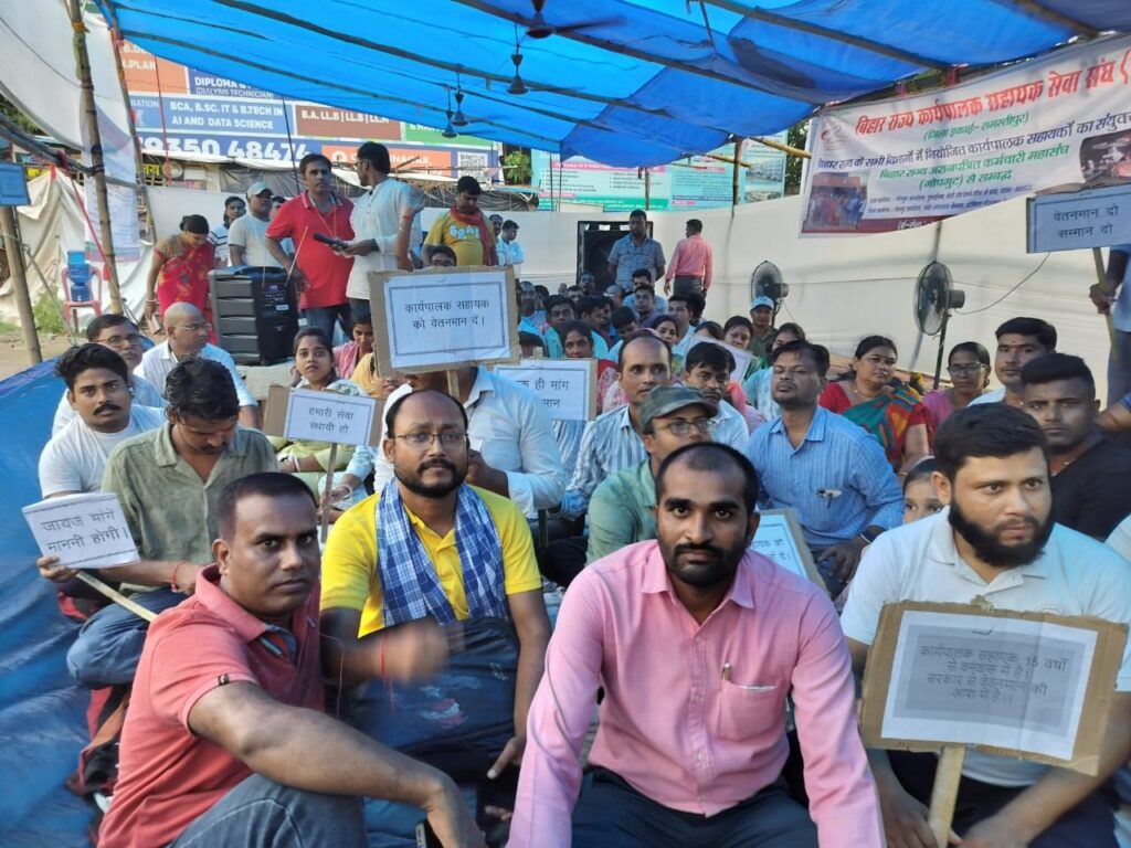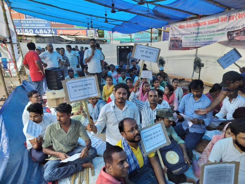 राज्यकर्मी का दर्जा देने की मांग को लेकर कार्यपालक सहायकों का समस्तीपुर में जोरदार प्रदर्शन