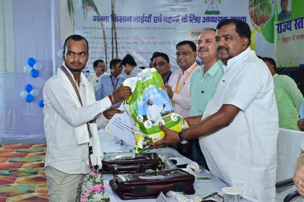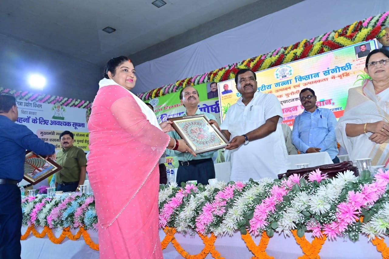 साथ ही राज्यभर के गन्ना किसानों को उत्पादन बढ़ाने पर जोर दिय। मौके पर गन्ना की बेहतर खेती करने वाले किसान और गुड़ उद्योग चलाने वाले उद्यमियों को मंत्री द्वारा सम्मानित किया गया। गन्ना मंत्री श्री पासवान ने कहा कि बिहार में गन्ना का उत्पादन कैसे बढ़े,इसपर सरकार काम कर रही है। साथ ही किसानों की समस्याओं को सुनकर खेती में आ रही परेशानियों को दूर करने की कोशिश की जा रही है। उन्होंने कहा कि हमारी सरकार चाहती है कि गन्ना का उत्पादन अधिक हो ताकि चीनी मिलें सुचारू रूप से चल सके और इसका फायदा किसान भाईयों को मिले। वही गोष्ठी में पटना से आये संयुक्त ईखा आयुक्त जय प्रकाश नारायण सिंह ने गन्ने की बुआई से लेकर उसकी देखभाल व पैदावार बढ़ाने के मंत्र की जानकारी दी।