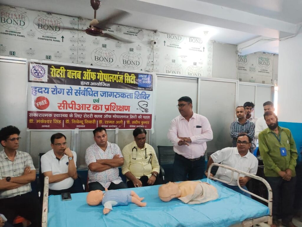 गोपालगंज, 29 सितम्बर (उषा मिश्रा) विश्व हृदय दिवस के अवसर पर रोटरी क्लब गोपालगंज सिटी की ओर से हृदय रोग जागरूकता अभियान चलाया गया। इस दौरान आम लोगों को सीपीआर कार्डियो पल्मोनरी रिससिटेशन का प्रशिक्षण दिया गया। शहर के कई स्थानों पर यह प्रशिक्षण आयोजित किया गया।
