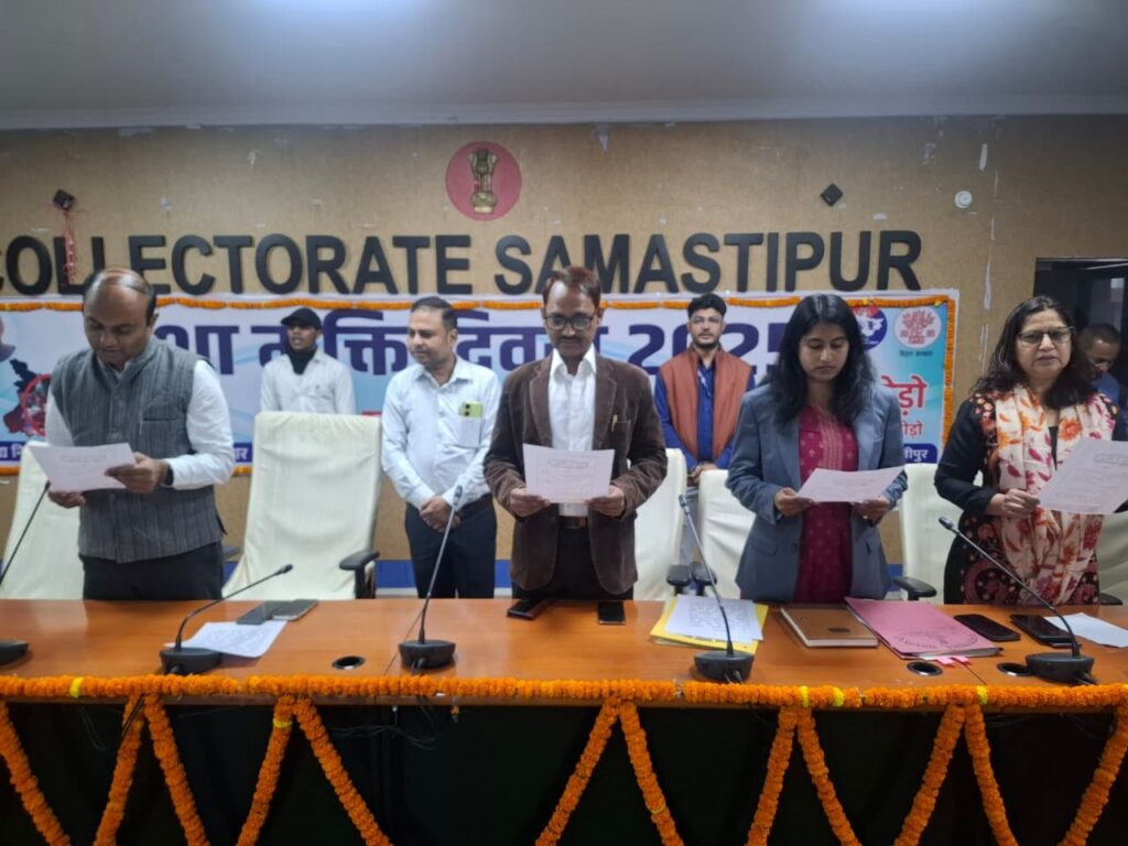 समस्तीपुर, 26 नवंबर (समस्तीपुर डेस्क) समाहरणालय सभागार में बुधवार को नशा मुक्ति दिवस एवं संविधान दिवस के अवसर पर जिला प्रशासन द्वारा संयुक्त कार्यक्रम का आयोजन किया गया। जिला पदाधिकारी रोशन कुशवाहा की अध्यक्षता में आयोजित इस कार्यक्रम में अधिकारियों, शिक्षकों, जीविका दीदी और आंगनवाड़ी सेविकाओं ने नशा मुक्त समाज के निर्माण और संविधान के प्रति निष्ठावान रहने की शपथ ली।