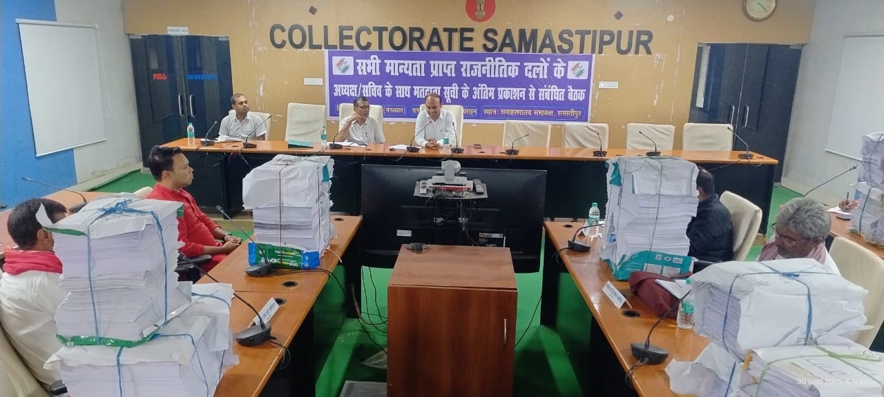 समस्तीपुर, 30 सितम्बर (मोहम्मद जमशेद) समस्तीपुर जिले के दस विधानसभा क्षेत्रों की फोटोयुक्त निर्वाचक सूची का अंतिम प्रकाशन कर दिया गया है। सभी निर्दिष्ट स्थलों पर सूची उपलब्ध करा दी गई है। इस अवसर पर समस्तीपुर के जिला निर्वाचन पदाधिकारी-सह-जिला पदाधिकारी की अध्यक्षता में बैठक आयोजित की गई, जिसमें जिले के सभी मान्यता प्राप्त राजनीतिक दलों के अध्यक्ष/सचिव उपस्थित रहे।