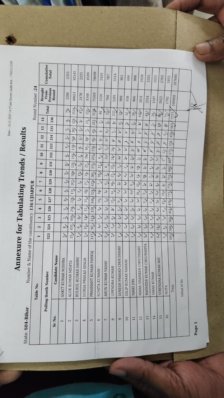 सरायरंजन में विजय कुमार चौधरी 7,469 वोटों से आगे हैं, वहीं वारिसनगर में 9,472 की बढ़त दर्ज की गई है। विभूतिपुर में अजय कुमार 4,764 तथा महदीनगर में सिया यादव 3,399 वोटों से आगे हैं। दसों विधानसभा क्षेत्रों में 15 राउंड की गणना पूरी हो चुकी है।