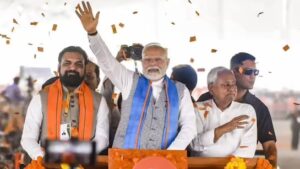 नई दिल्ली, 24 अक्टूबर (अशोक “अश्क”) प्रधानमंत्री नरेंद्र मोदी ने शुक्रवार को बिहार विधानसभा चुनाव अभियान की शुरुआत समस्तीपुर जिले के कर्पूरीग्राम से की। इस दौरान उन्होंने समाजवादी नेता कर्पूरी ठाकुर को श्रद्धांजलि अर्पित की और जनसभा को संबोधित करते हुए एनडीए के लिए जीत का बिगुल फूंका। हालांकि पीएम मोदी ने मंच से मुख्यमंत्री नीतीश कुमार को एनडीए का स्पष्ट सीएम चेहरा घोषित नहीं किया, लेकिन “नीतीश बाबू के नेतृत्व में चुनाव” लड़ने की बात कहकर संकेत साफ कर दिए।