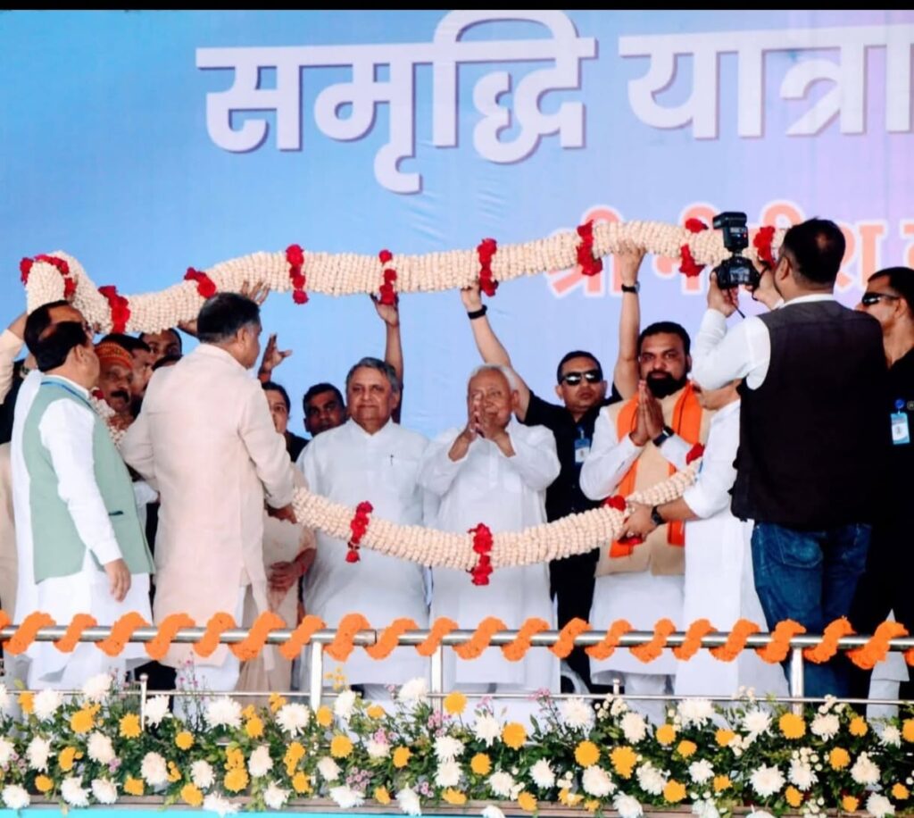 पूर्णिया:-13 मार्च(राजेश कुमार झा)अभी तक चल रही तीसरे चरण की समृद्धि यात्रा के दौरान आमजनों की चर्चा में पूर्णिया बाकी जिलों में सबसे अलग रहा.पूर्णिया में सीएम अपने पुराने चिर-परिचित अंदाज में दिखे और आमजनों को खूब हंसाते भी रहे और बहुत खुलकर 20 साल के कार्यकाल की उपलब्धियां बताए,जो आज पूरे पूर्णिया में इस बात की चर्चा जोरों पर है.बताते चलें कि तीसरे चरण की समृद्धि यात्रा के दौरान पूर्णिया पहुंचे मुख्यमंत्री ने रंगभूमि मैदान में तकरीबन एक घंटे चले जनसंवाद में एक बार भी राज्यसभा जाने पर चर्चा तक नहीं की.जो लोगों के बीच काफी उत्सुकता का विषय है.