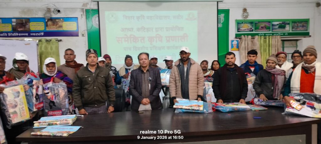 बक्सर, 09 जनवरी (विक्रांत) बिजीहार कृषि महाविद्यालय, सबौर द्वारा 05 से 09 जनवरी 2026 तक समेकित कृषि प्रणाली विषय पर आयोजित पाँच दिवसीय आवासीय प्रशिक्षण सफलतापूर्वक संपन्न हुआ।