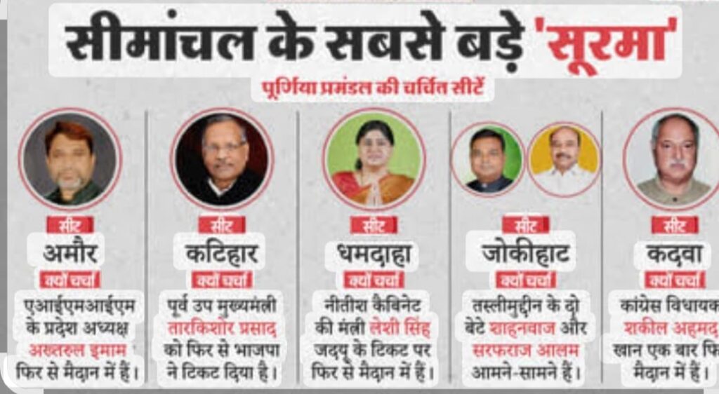 सीमांचल के किशनगंज, अररिया, कटिहार और पूर्णिया जिलों में मुस्लिम आबादी 37% से 67% के बीच है। इसी कारण यह इलाका सभी दलों के लिए निर्णायक साबित होता है। 2020 में एआईएमआईएम के पांच में से चार विधायक बाद में आरजेडी में शामिल हो गए थे, पर इस बार पार्टी अपनी खोई जमीन वापस पाने की कोशिश में जुटी है।
