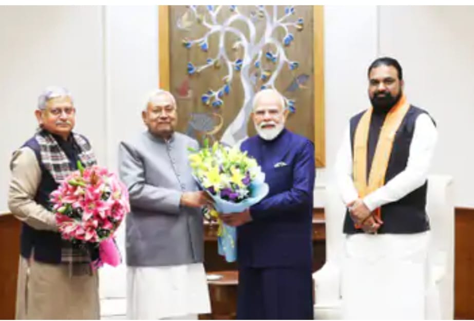 इस अहम मुलाकात में नीतीश कुमार के साथ केंद्रीय मंत्री ललन सिंह और बिहार के डिप्टी सीएम सम्राट चौधरी भी मौजूद रहे। तीनों नेता एक ही कार से प्रधानमंत्री आवास पहुंचे, जिससे इस बैठक को और भी खास माना जा रहा है। सूत्रों के मुताबिक बातचीत के दौरान बिहार से जुड़े राजनीतिक और प्रशासनिक मुद्दों पर विस्तार से चर्चा हुई।मुख्यमंत्री नीतीश कुमार रविवार को पटना से दिल्ली के लिए रवाना हुए थे। बिहार विधानसभा चुनाव में भारी जीत के बाद यह उनका पहला दिल्ली दौरा बताया जा रहा है। इस दौरे को एनडीए के भीतर भविष्य की रणनीति के लिहाज से बेहद महत्वपूर्ण माना जा रहा है।