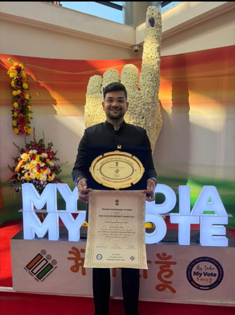जिले में निर्वाचन कर्मियों, पदाधिकारियों एवं संबंधित हितधारकों के लिए निरंतर, गुणवत्तापूर्ण एवं तकनीकी रूप से उत्कृष्ट चुनाव प्रबंधन सुनिश्चित किया गया.जिससे लोकतांत्रिक व्यवस्था और अधिक मजबूत हुई है.इस गौरवपूर्ण उपलब्धि के क्रम में जिलाधिकारी सह जिला निर्वाचन पदाधिकारी, पूर्णिया श्री अंशुल कुमार को आज नई दिल्ली में आयोजित राष्ट्रीय समारोह के दौरान महामहिम राष्ट्रपति भारत श्रीमती द्रौपदी मुर्मू जी के कर-कमलों से यह प्रतिष्ठित पुरस्कार प्रदान किया गया. यह क्षण न केवल पूर्णिया जिले बल्कि पूरे बिहार राज्य के लिए अत्यंत गौरव का विषय है.